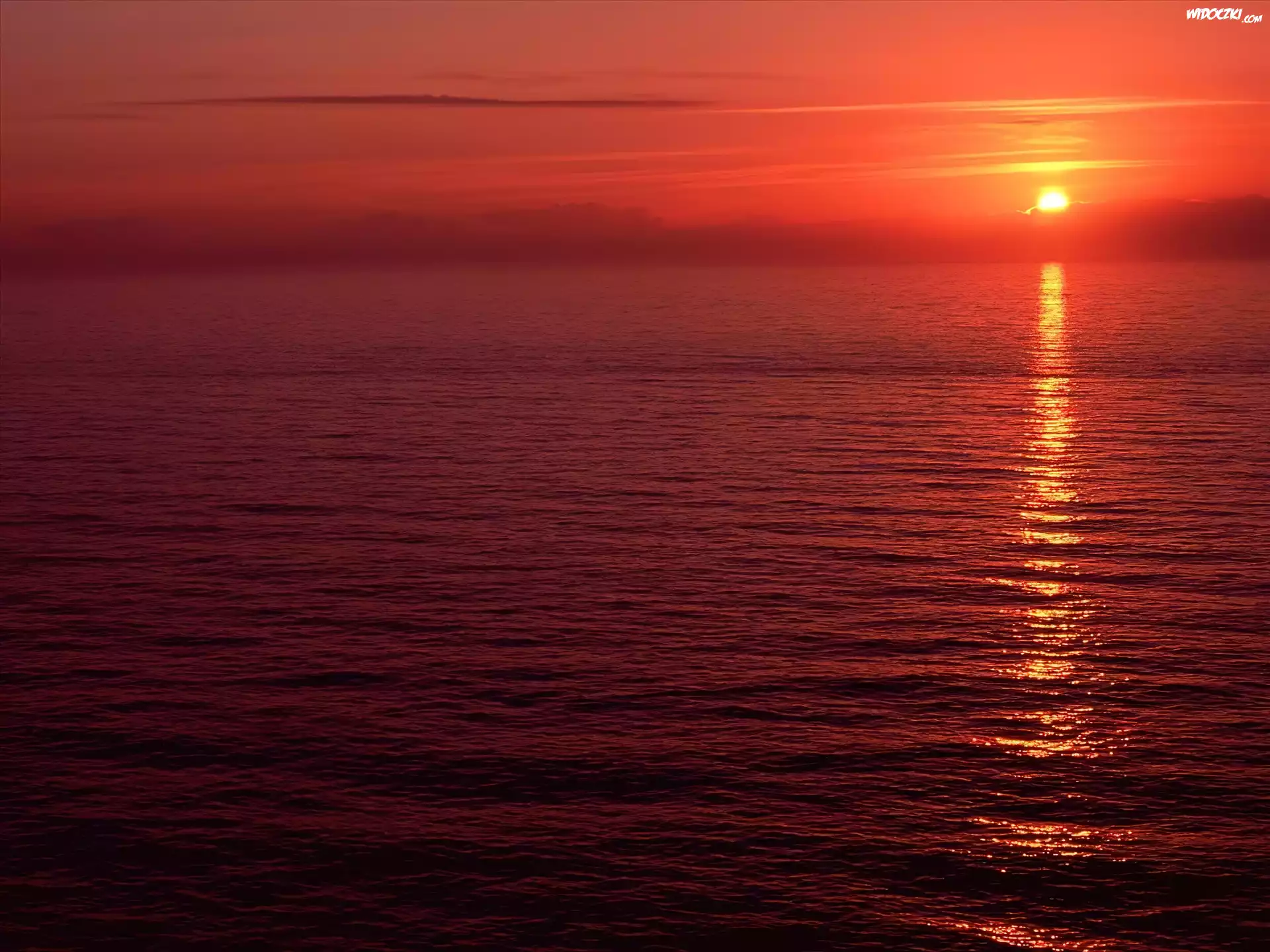 Zdjęcia, Morze, Zachód, Słońca, Horyzont
