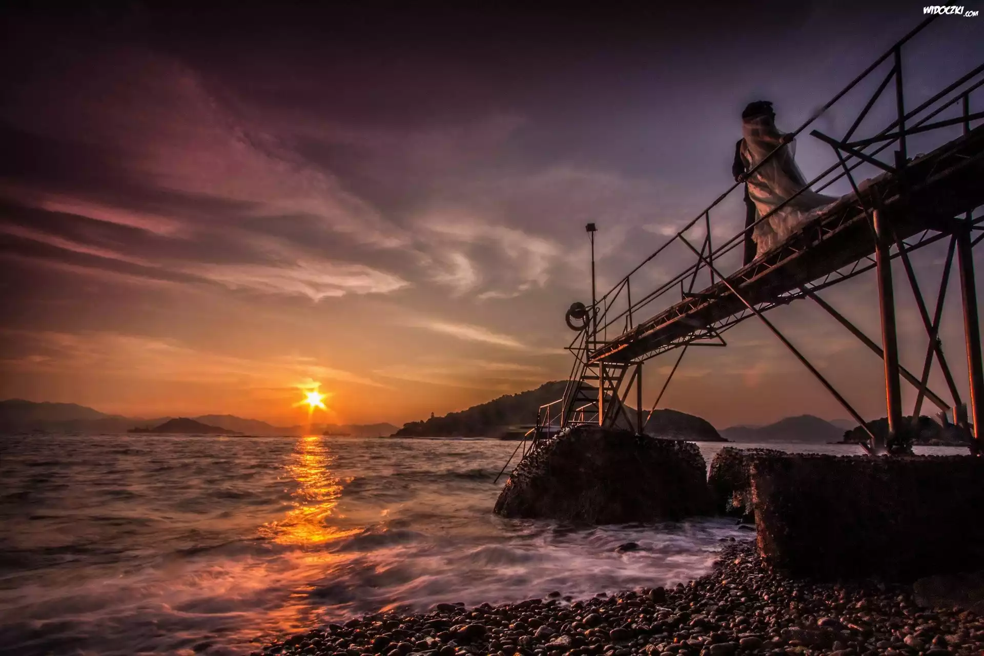Morze, Zachód słońca, Kamienie
