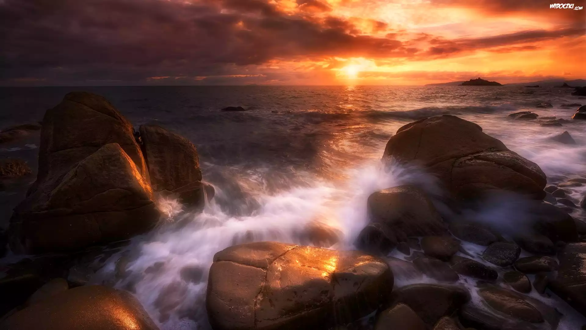 Morze, Zachód Słońca, Kamienie