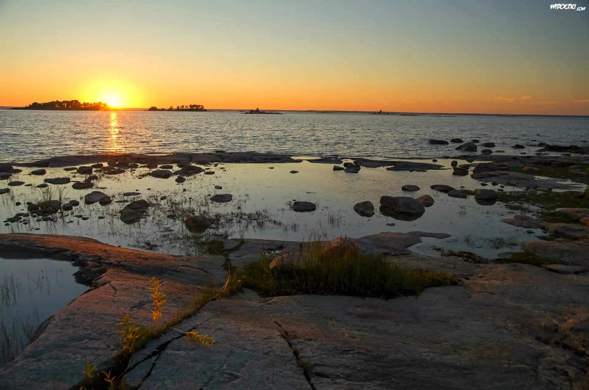 Zdjęcia, Morze, Zachód, Słońca, Kamienie
