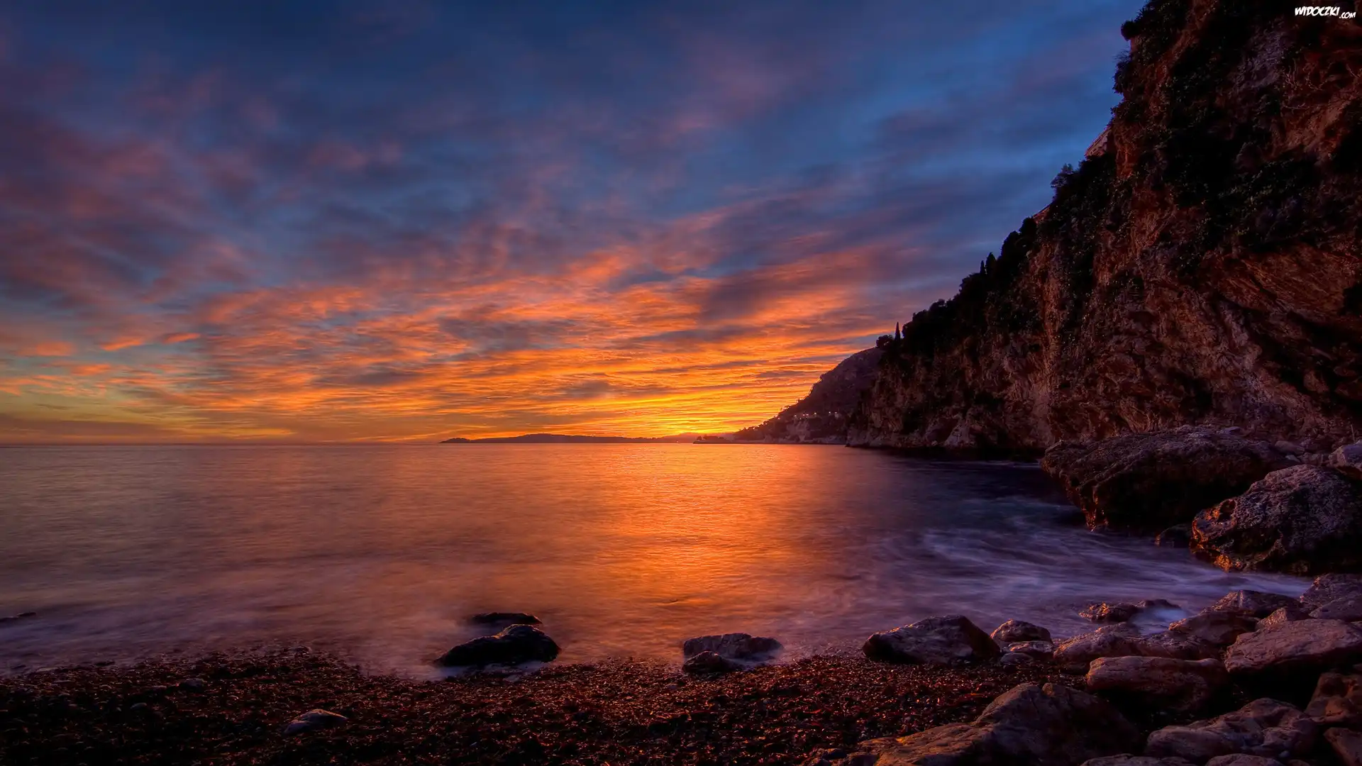 Zdjęcia, Morze, Kamienie, Zachód, Słońca, Klif