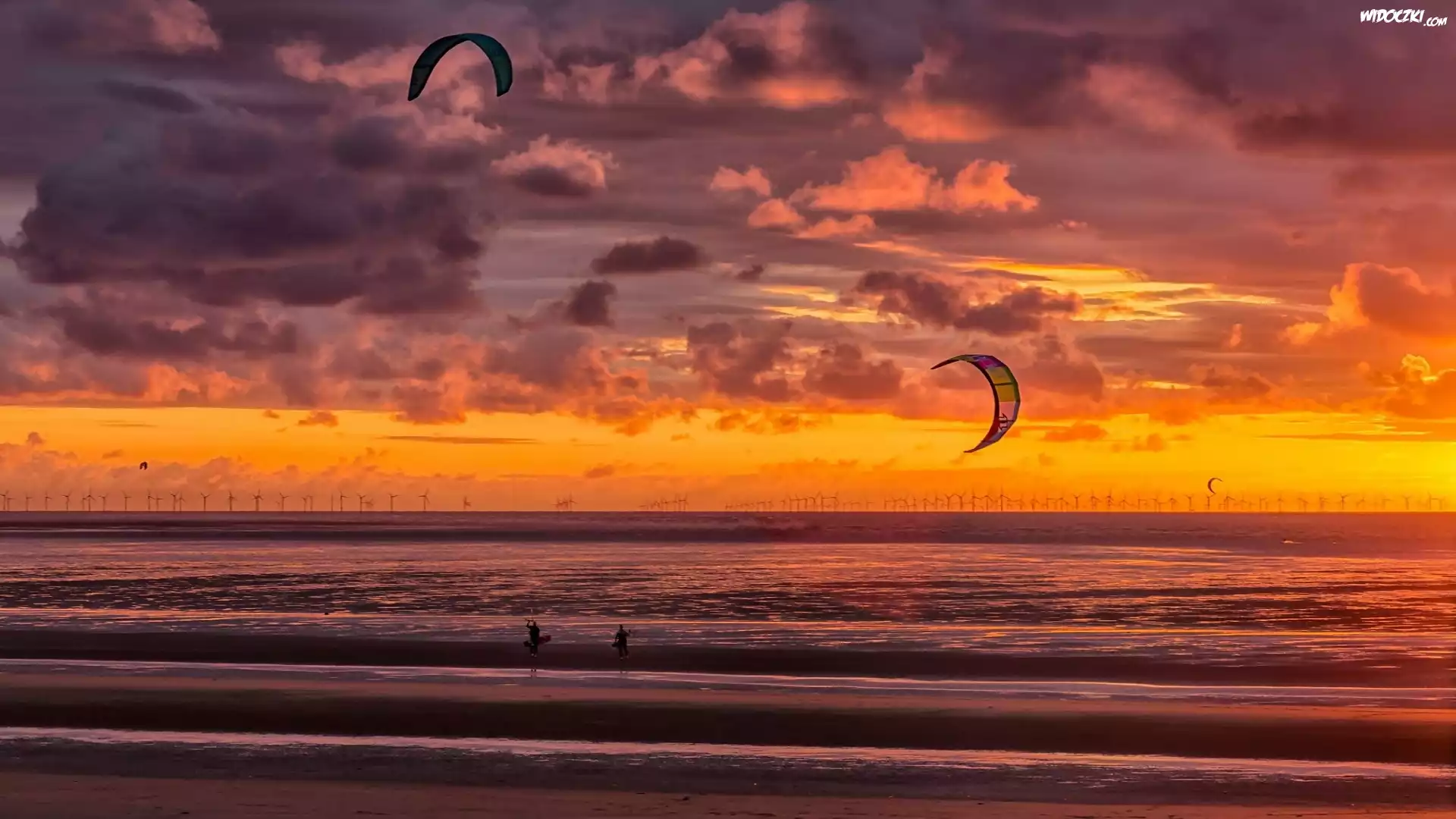 Morze, Zachód Słońca, Latawce