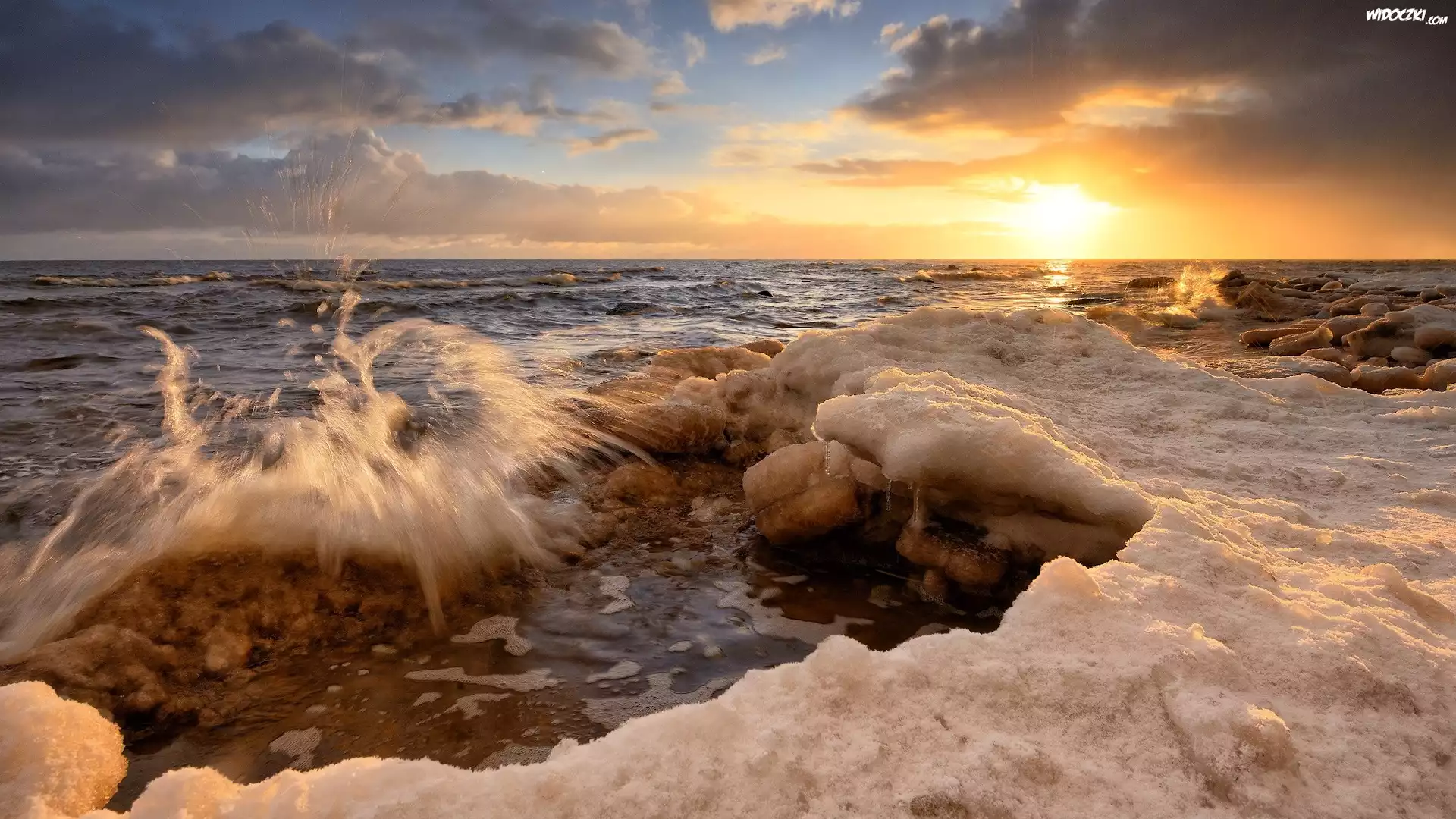Zdjęcia, Morze, Lód, Zachód słońca, Zima