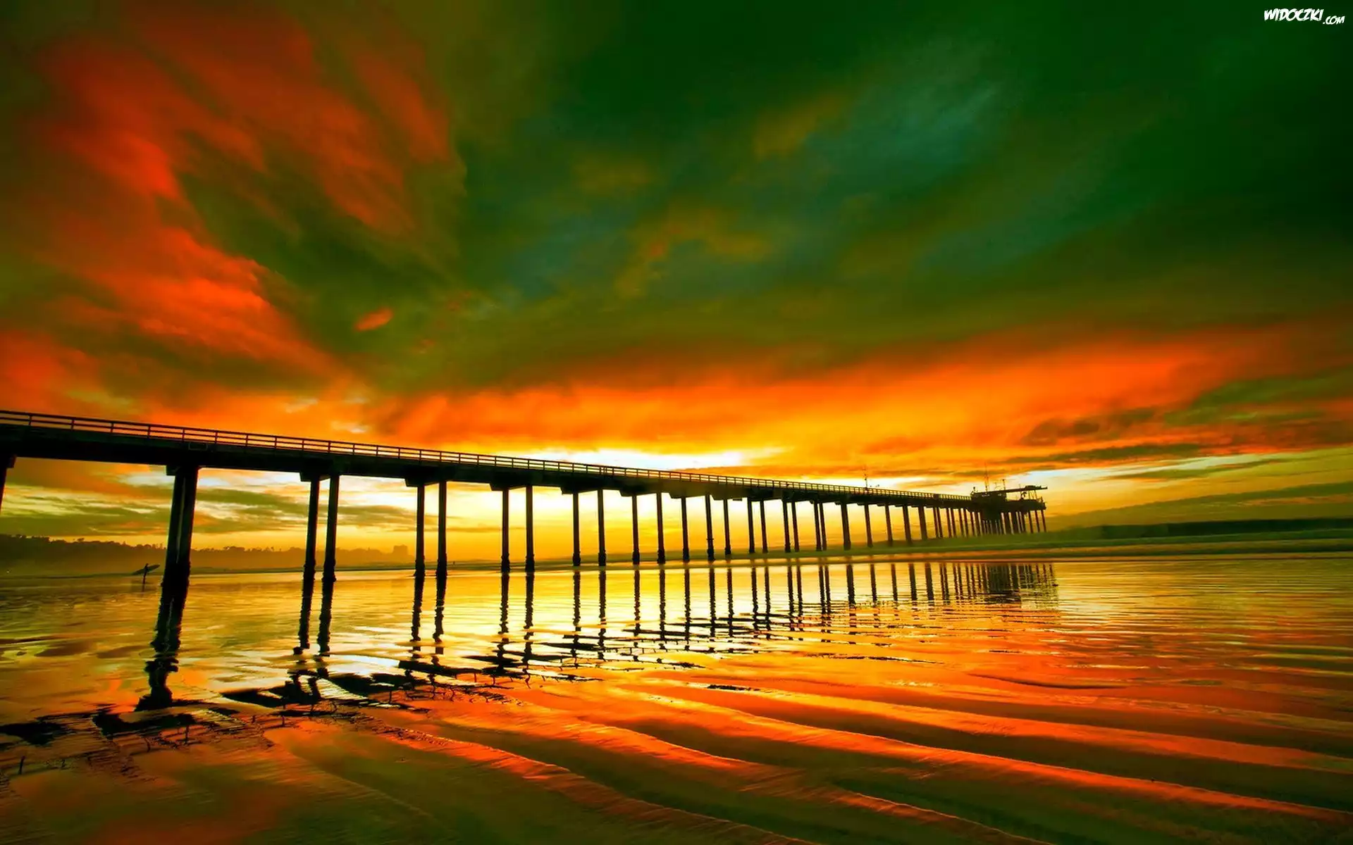 Zdjęcia, Morze, Zachód, Słońca, Molo