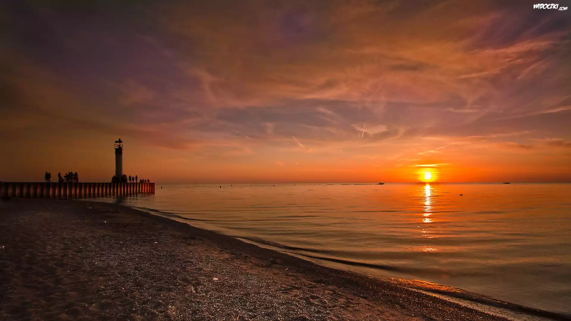 Morze, Zachód Słońca, Niebo