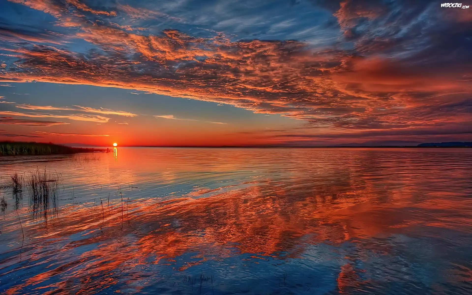 Morze, Zachód, Słońca, Odbicie