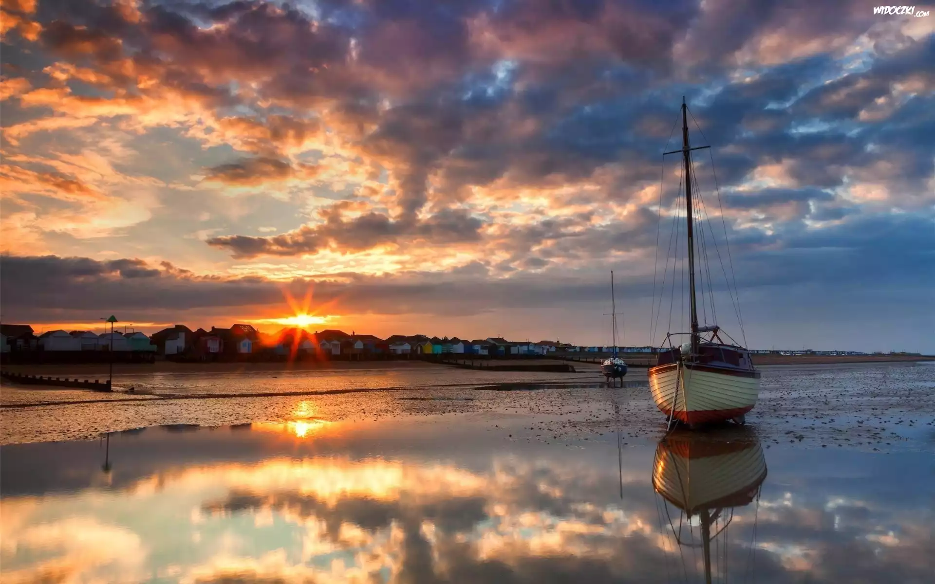 Zdjęcia, Morze, Zachód słońca, Łódź