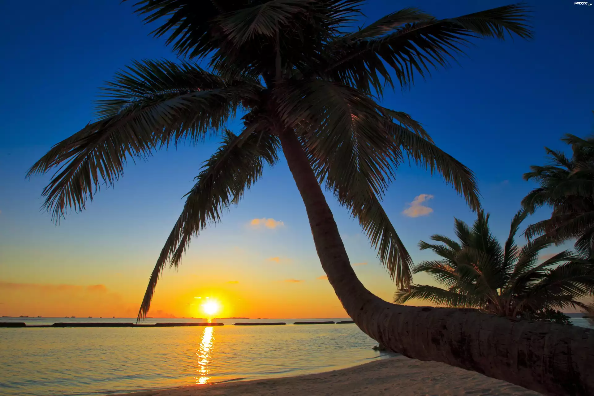 Zdjęcia, Morze, Zachód Słońca, Palmy