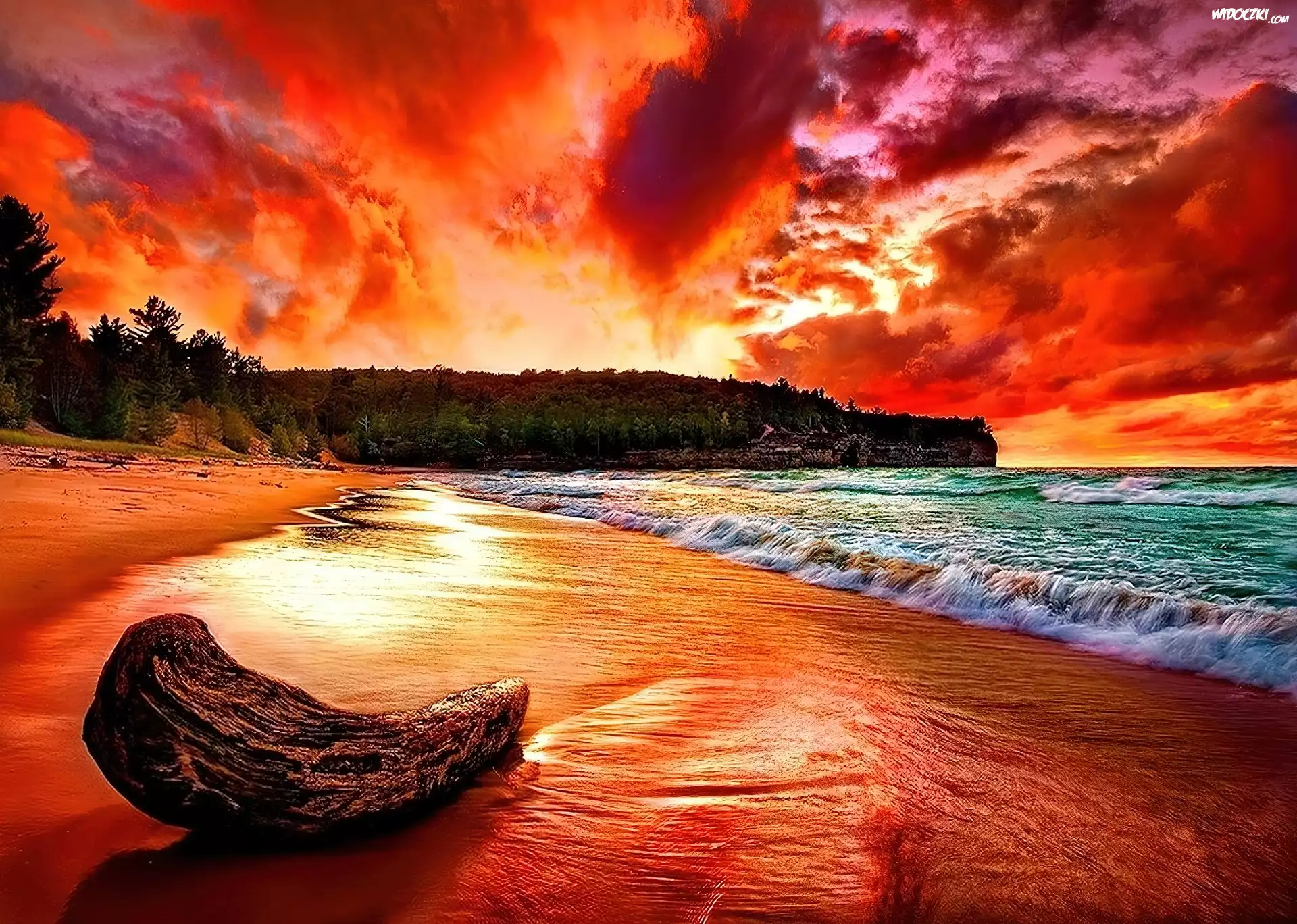 Zdjęcia, Morze, Plaża, Zachód, Słońca, Chmury