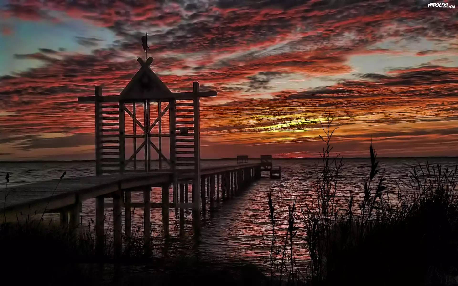 Zdjęcia, Morze, Zachód, Słońca, Pomost