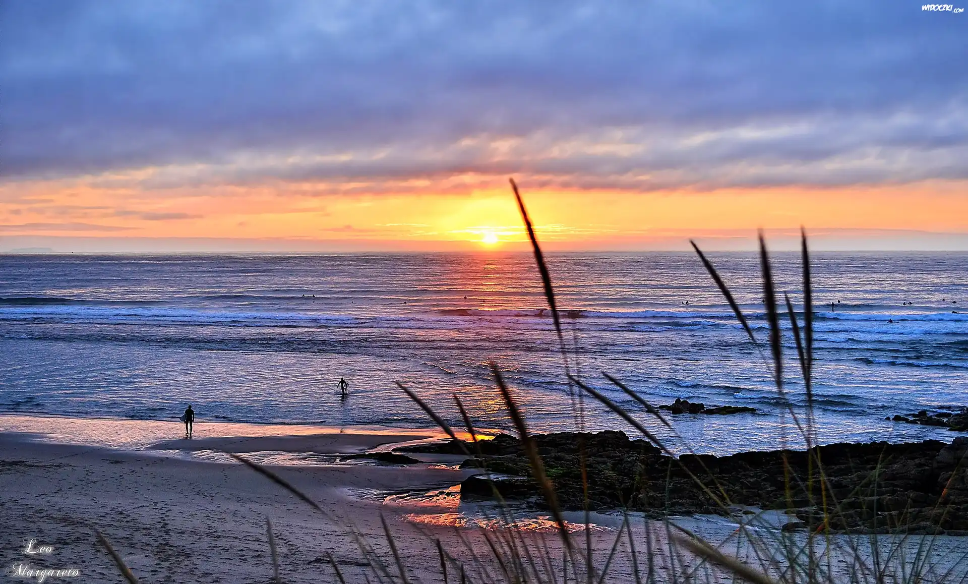 Zdjęcia, Morze, Zachód słońca, Roślinność