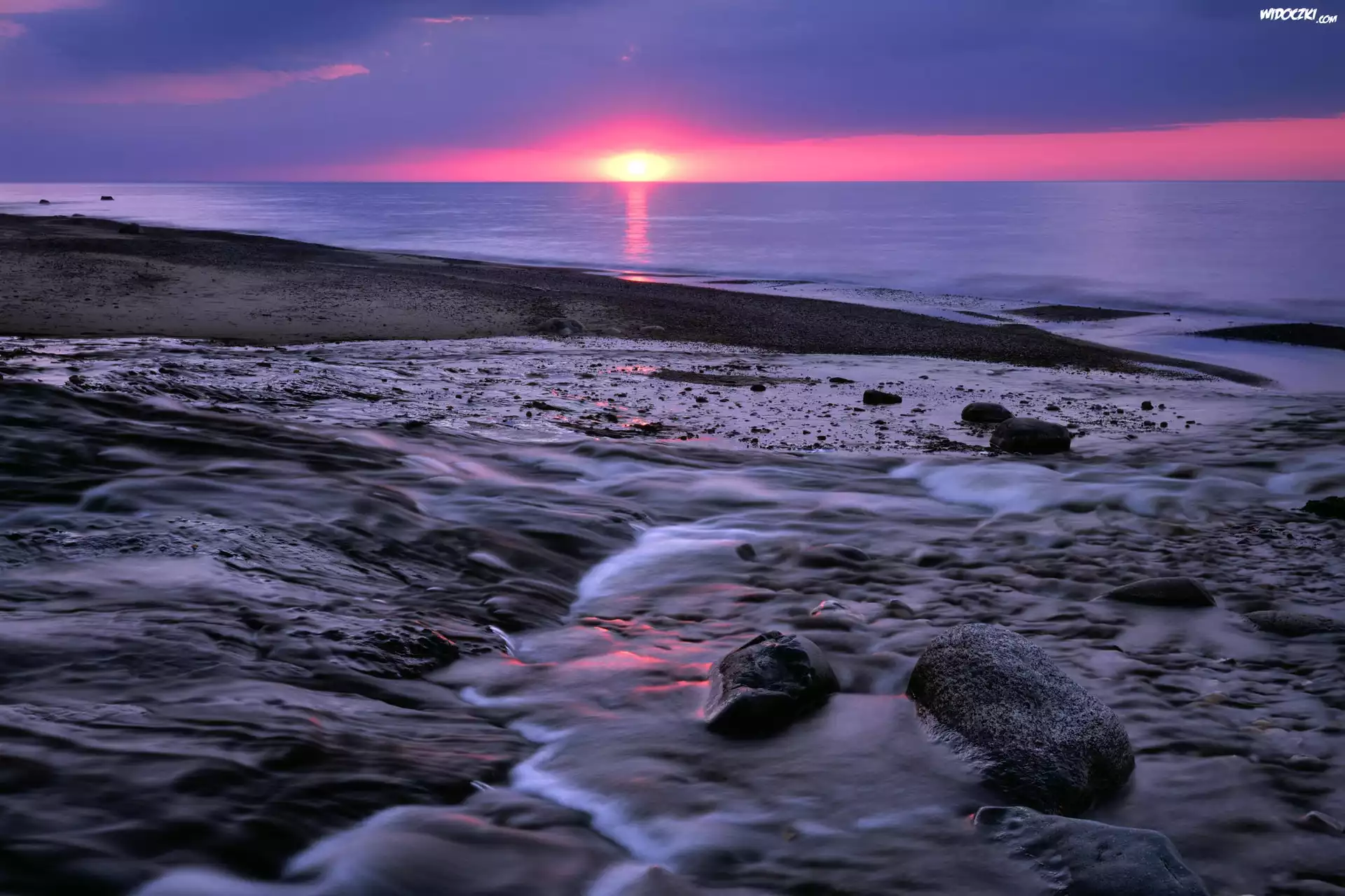 Zdjęcia, Morze, Zachód, Słońca, Skała