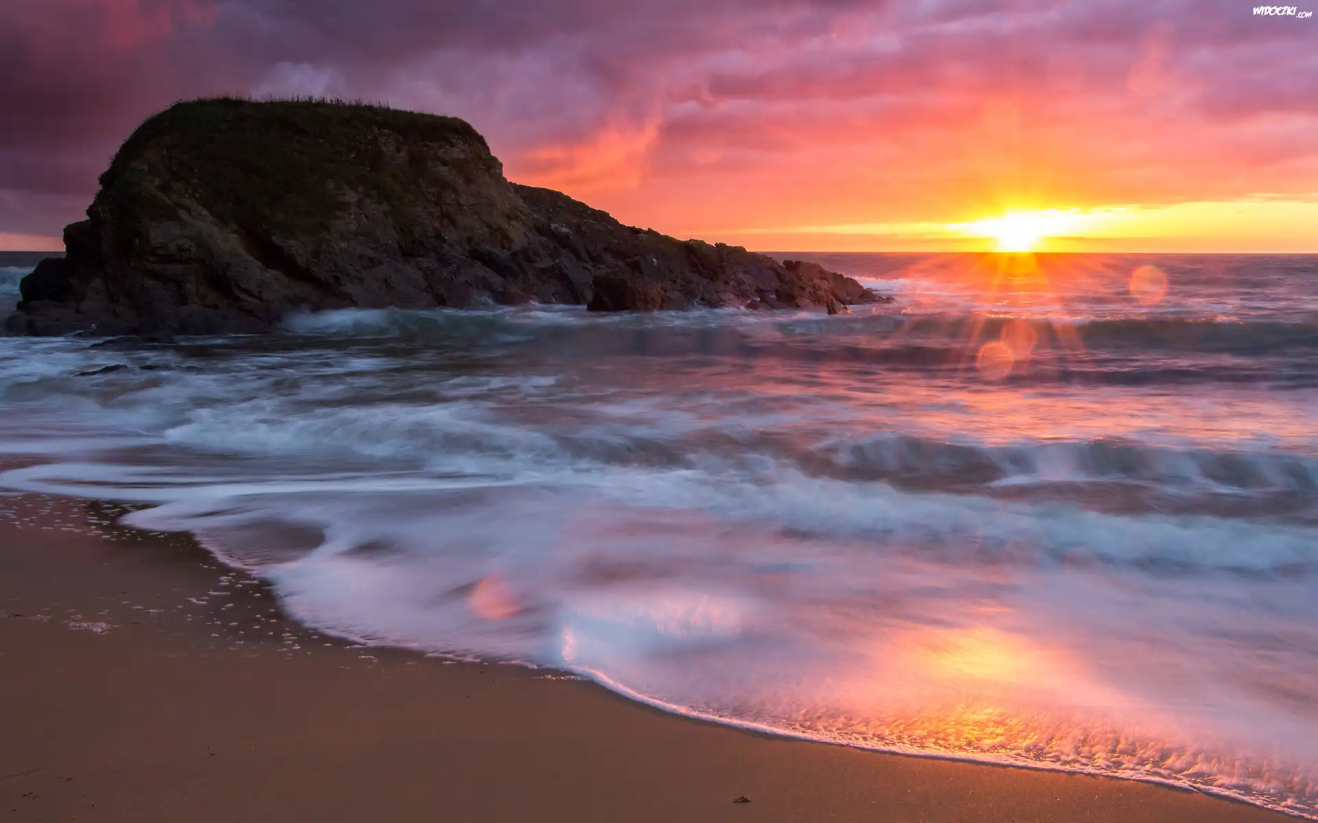 Morze, Zachód słońca, Skały