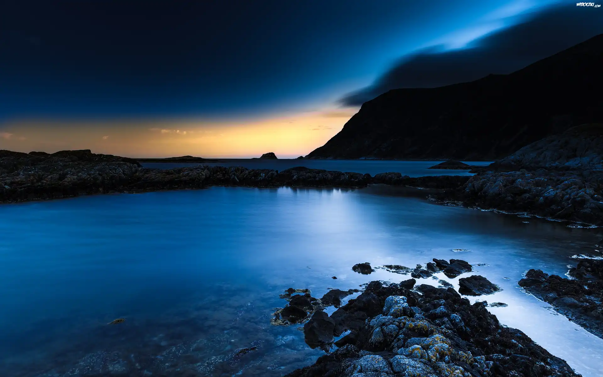 Zdjęcia, Morze, Zachód, Słońca, Skały