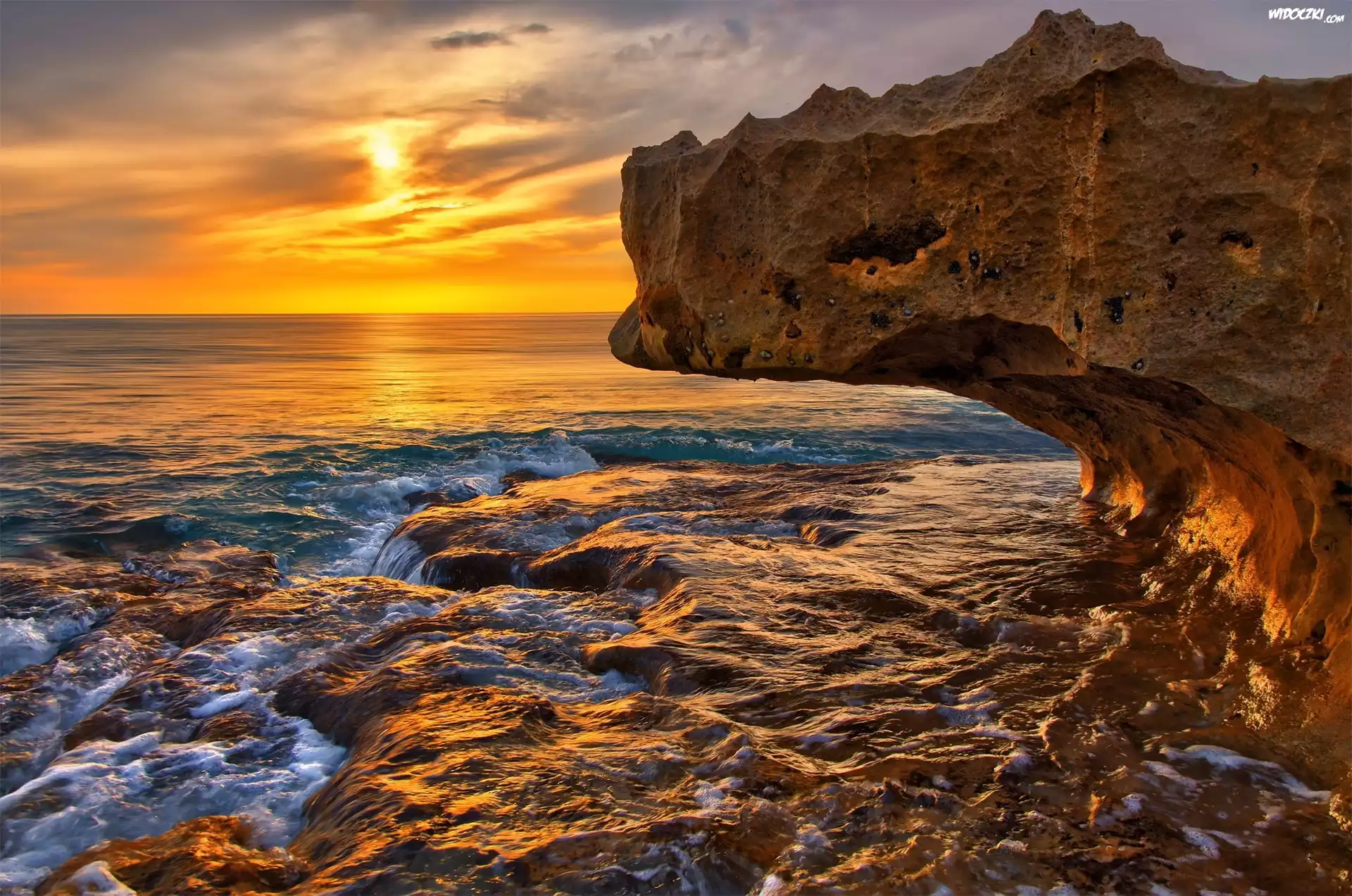Zdjęcia, Morze, Skały, Zachód, Słońca, Klif