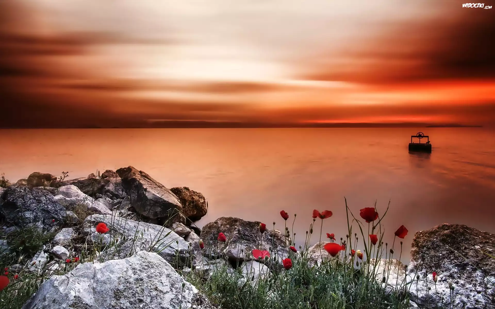Zdjęcia, Morze, Skały, Zachód Słońca, Maki