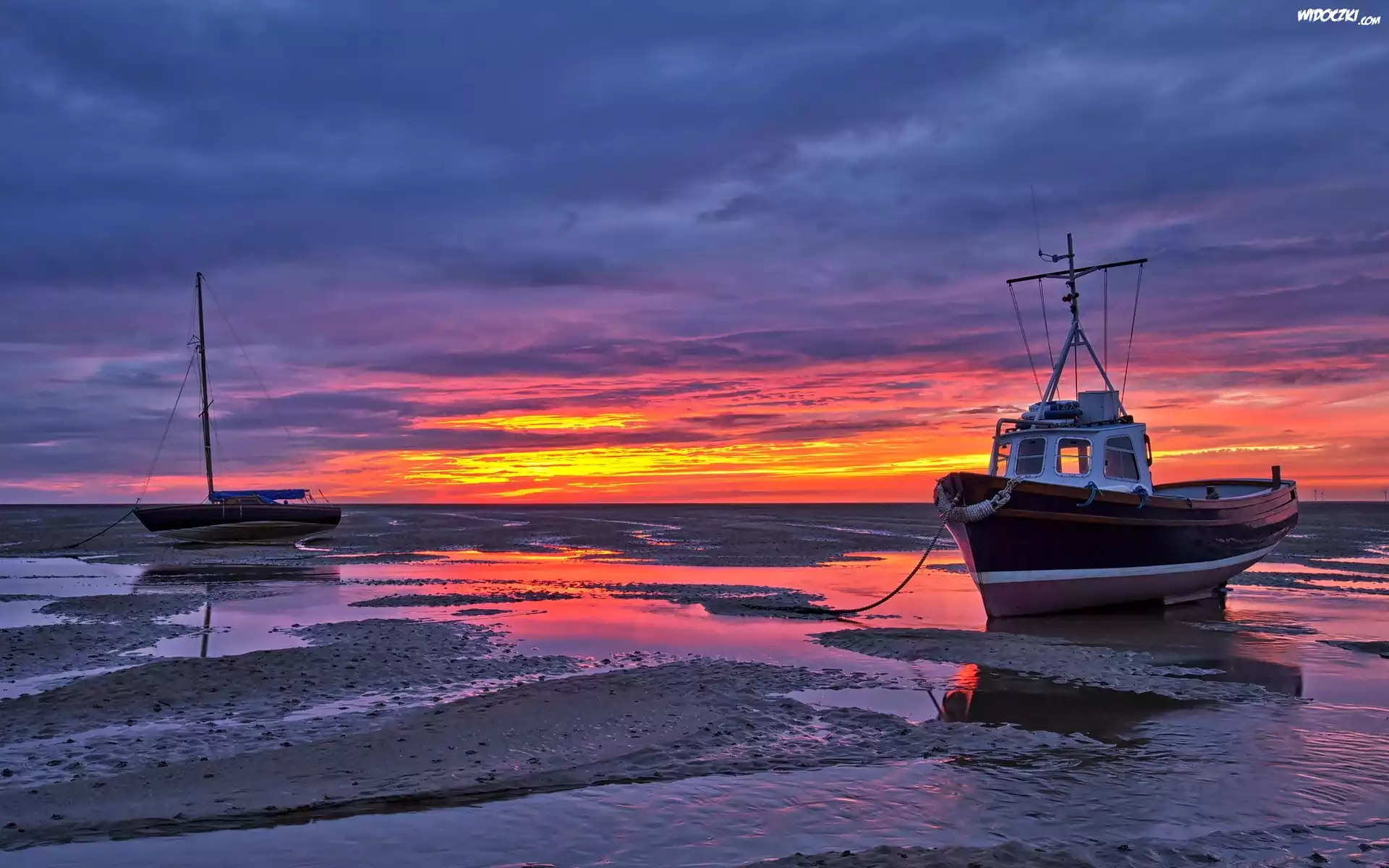 Morze, Zachód, Słońca, Statki