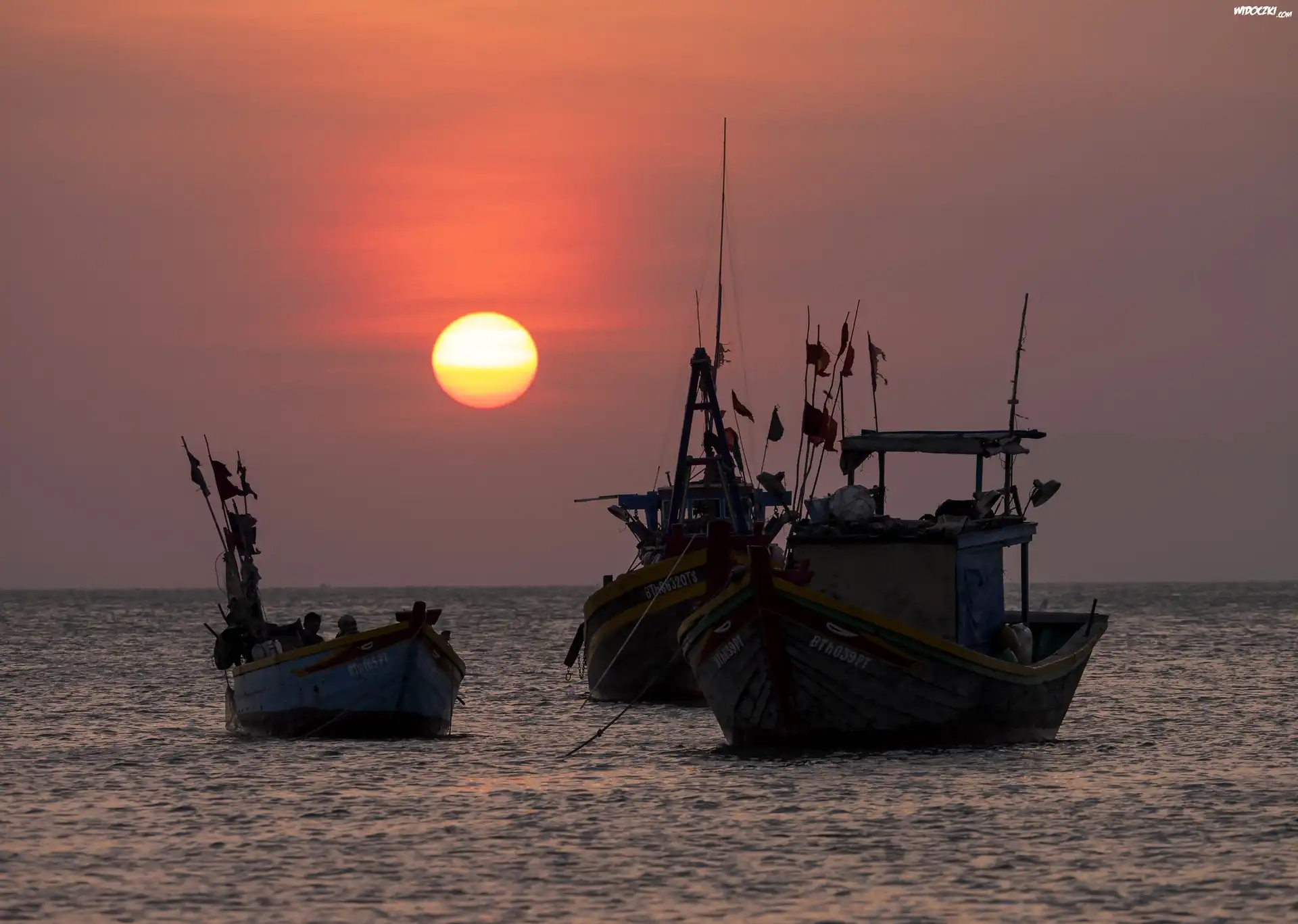 Zdjęcia, Morze , Zachód, Słońca, Statki