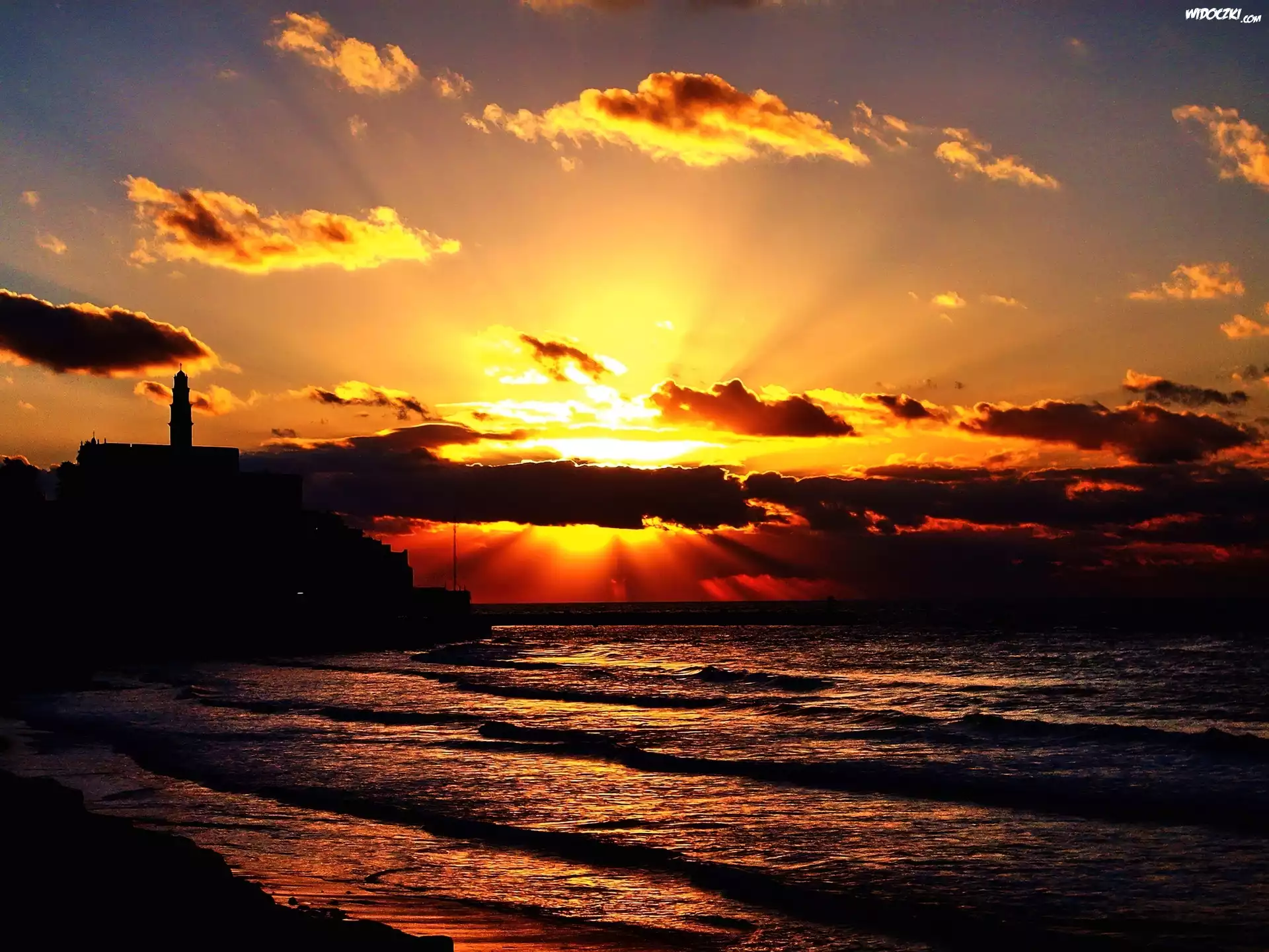 Zdjęcia, Morze, Fale, Chmury, Słońce, Promienie