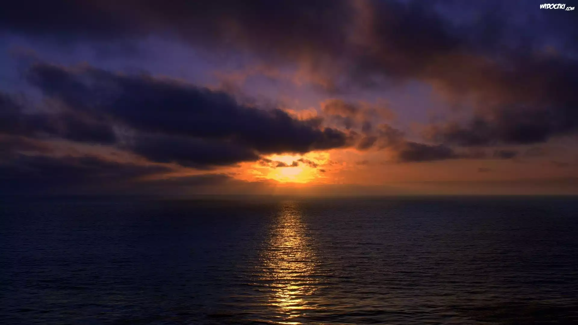 Zdjęcia, Morze, Zachodzące, Słońce, Chmury