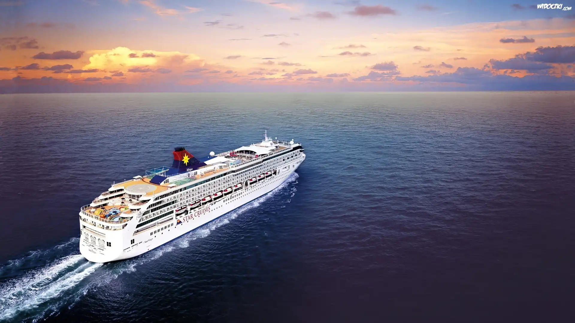 Zdjęcia, Morze, Zachód, Słońca, Statek, Pasażerski