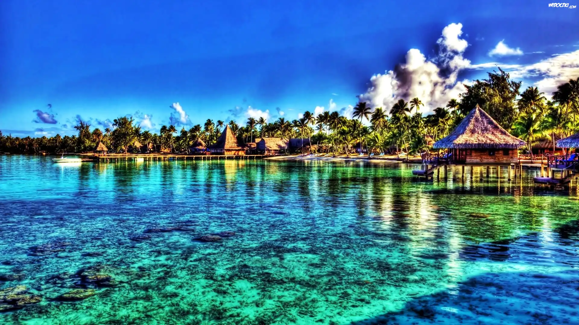 Zdjęcia, Morze, Wybrzeże, Domki, Palmy, Tahiti, HDR