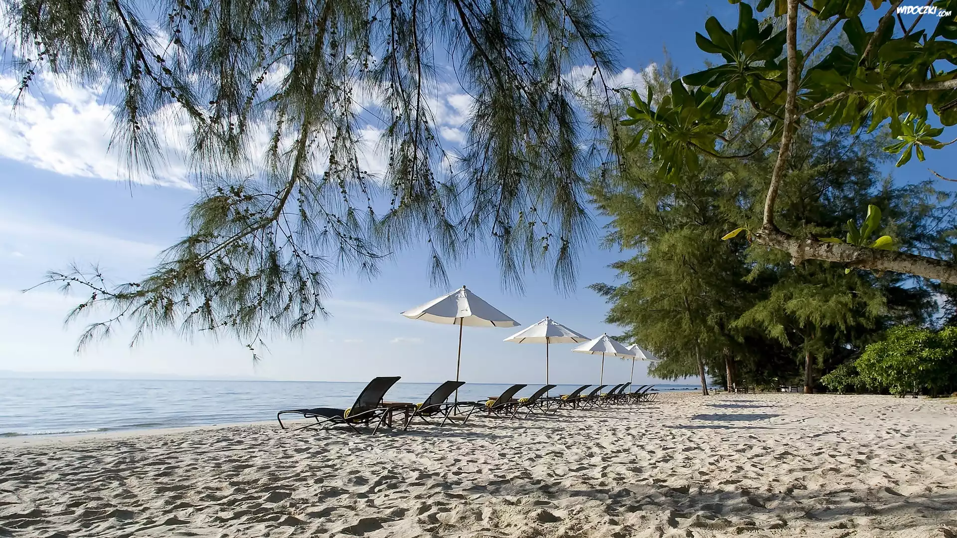 Tajlandia, Morze, Plaża, Leżaki, Roślinność, Wakacje, Parasole