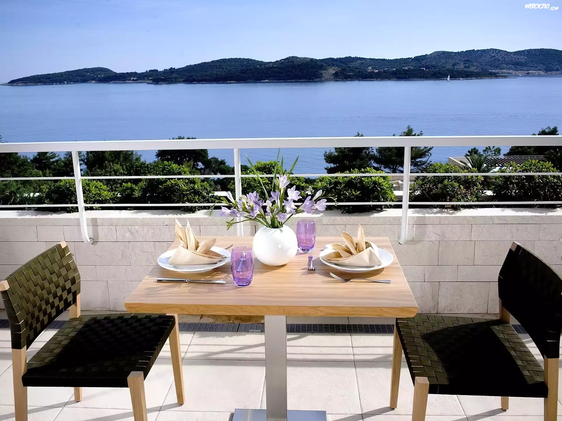 Zdjęcia, Morze, Wzgórza, Taras, Stolik