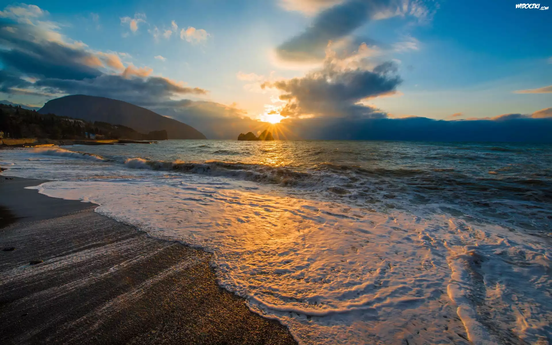 Zdjęcia, Plaża, Morze, Góry, Promienie, Słońca, Jałta, Krym, Ukraina