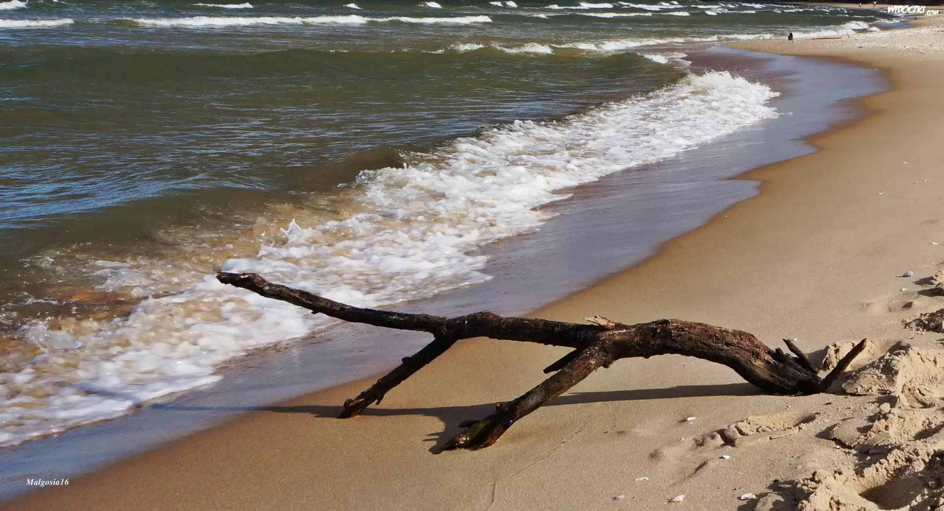 Zdjęcia, Morze, Bałtyk, Fale, Plaża, Uschnięta, Gałąź