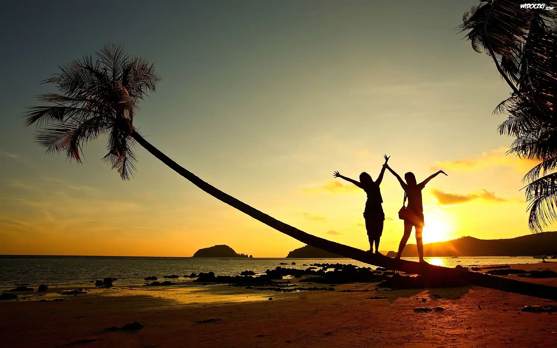 Zdjęcia, Wakacje, Morze, Plaża, Zachód, Słońca, Palma, Turystki