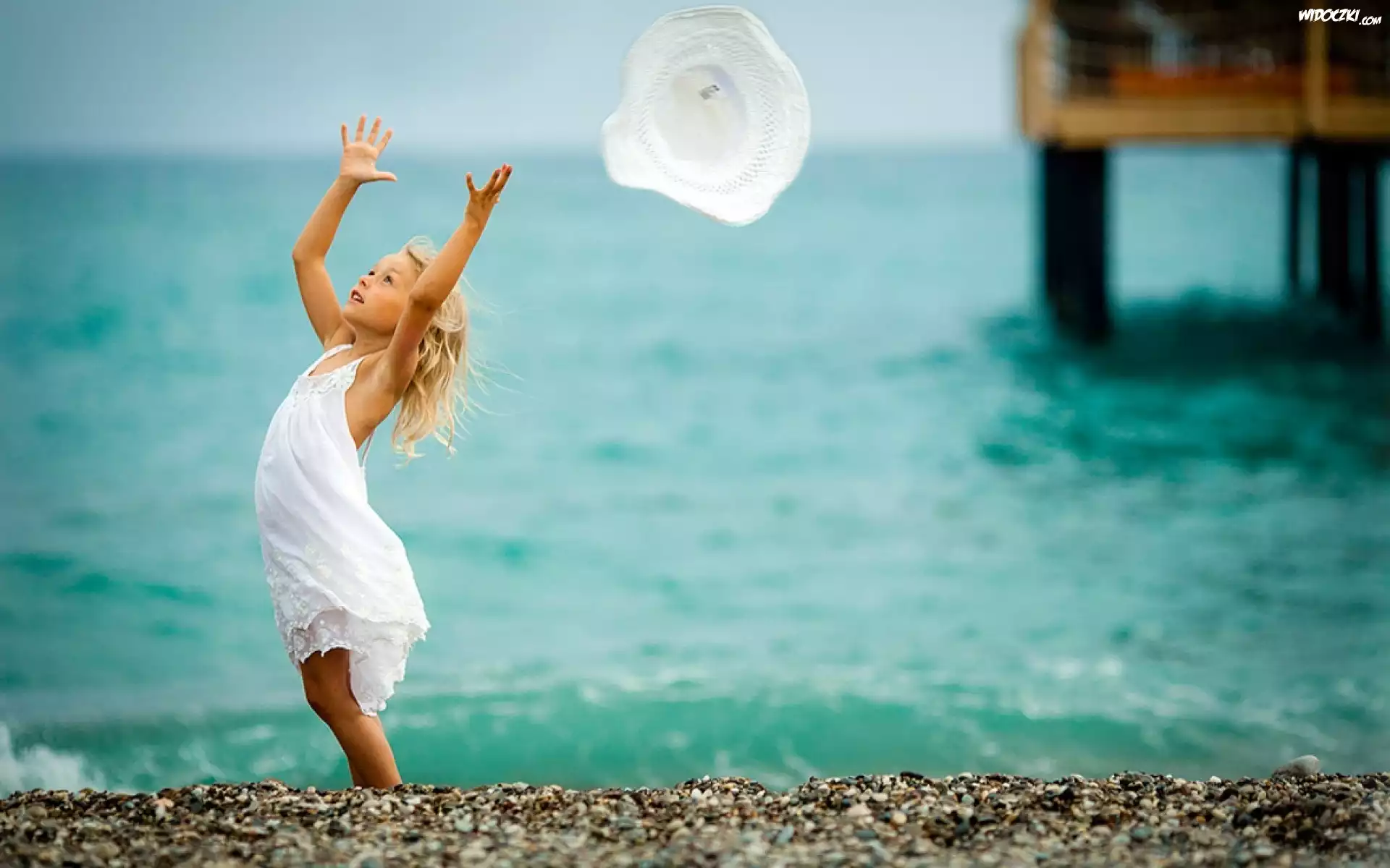 Morze, Dziewczynka, Wiatr, Kapelusz