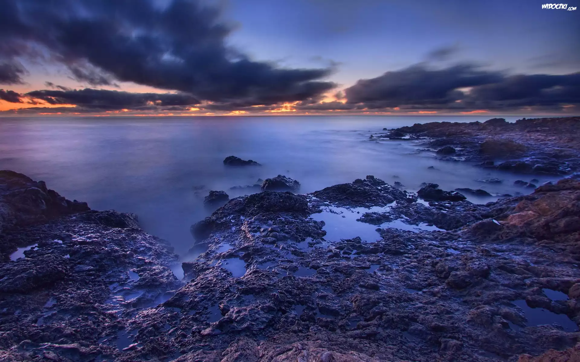 Zdjęcia, Morze, Brzeg, Chmury, Wschód Słońca