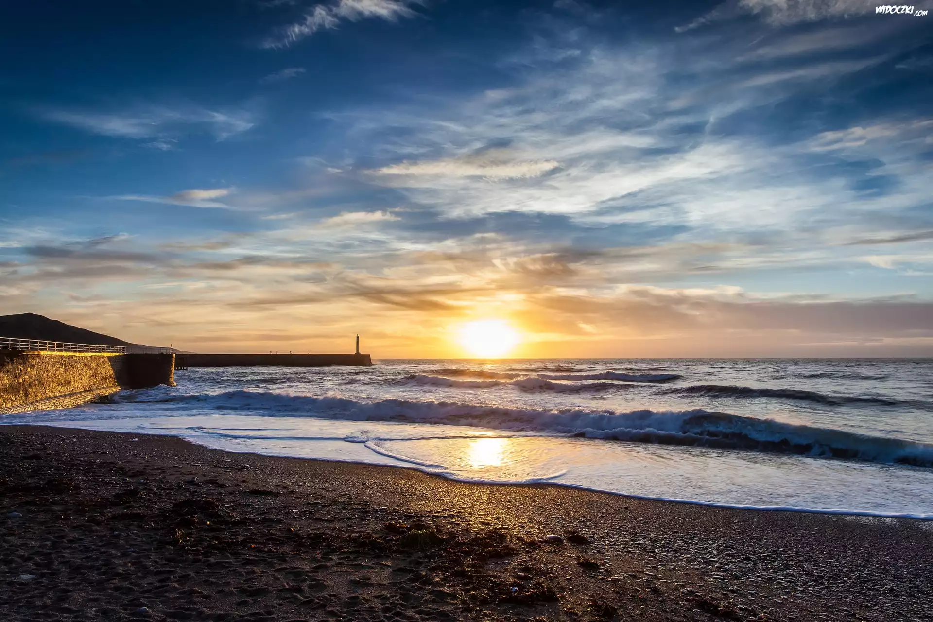 Zdjęcia, Morze, Brzeg, Fale, Wschód słońca