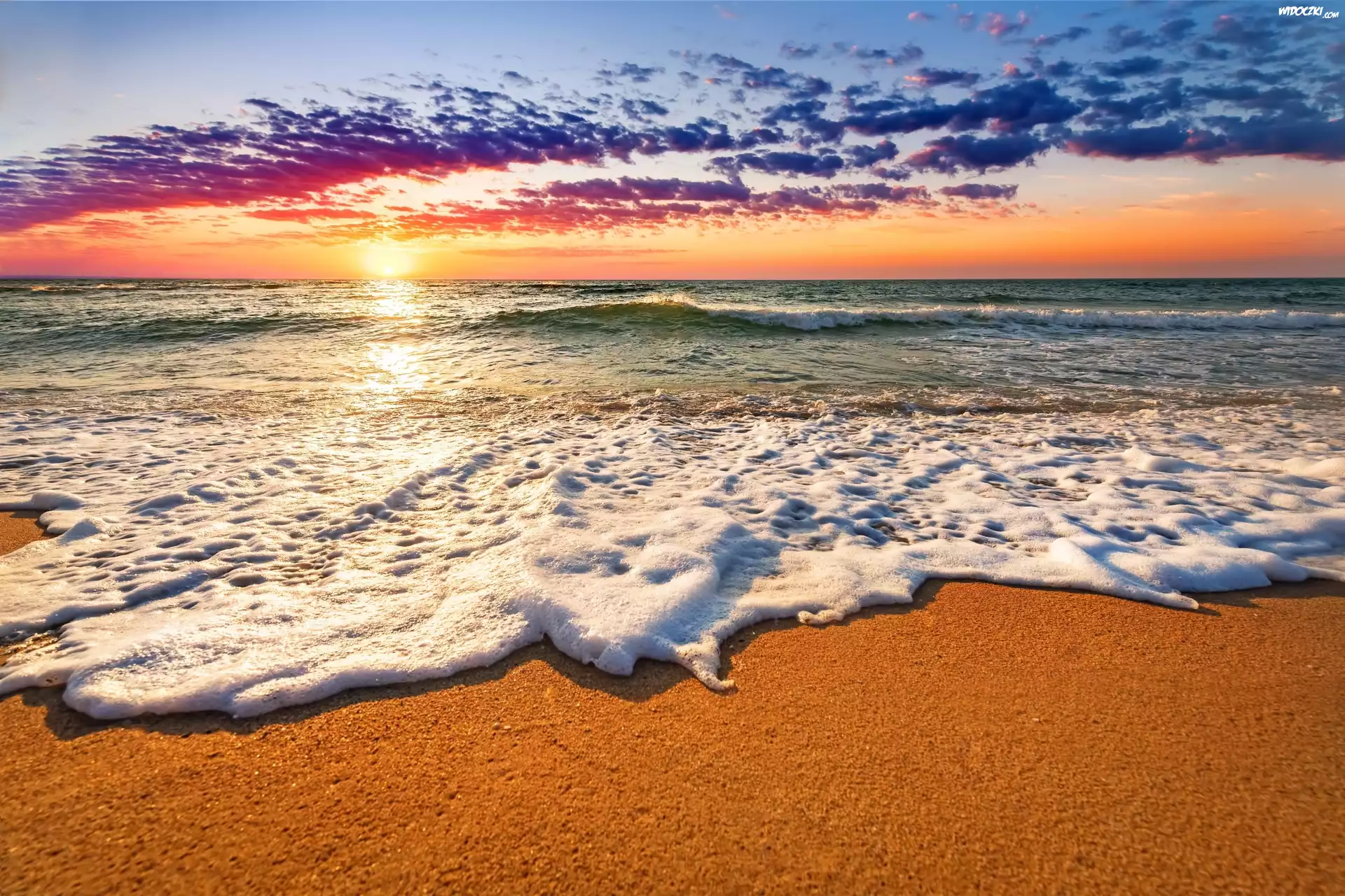 Zdjęcia, Morze, Plaża, Fale, Wschód, Słońca