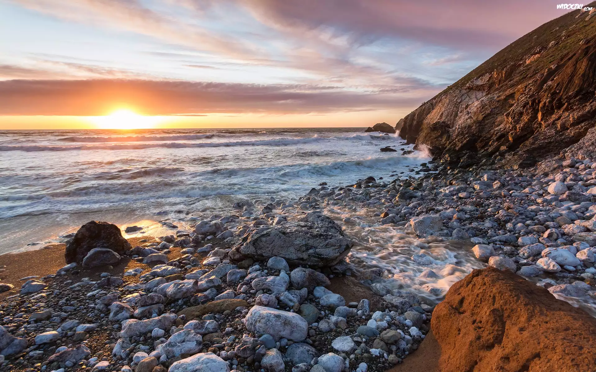 Zdjęcia, Morze, Kamienie, Wschód słońca