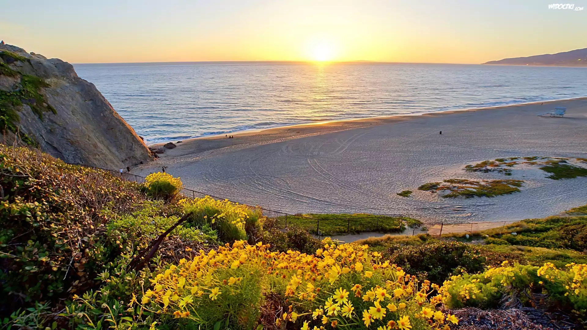 Morze, Plaża, Kwiaty, Wschód, Słońca