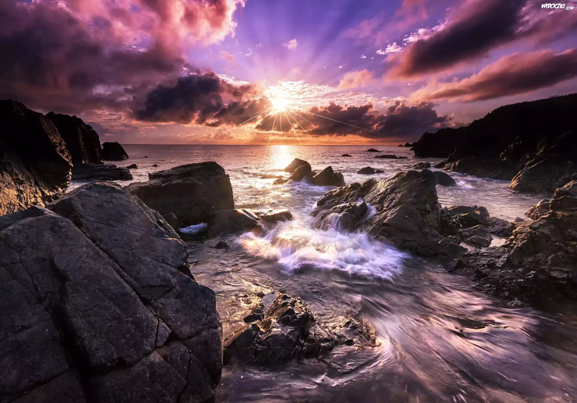 Zdjęcia, Morze, Skały, Wschód, Słońca