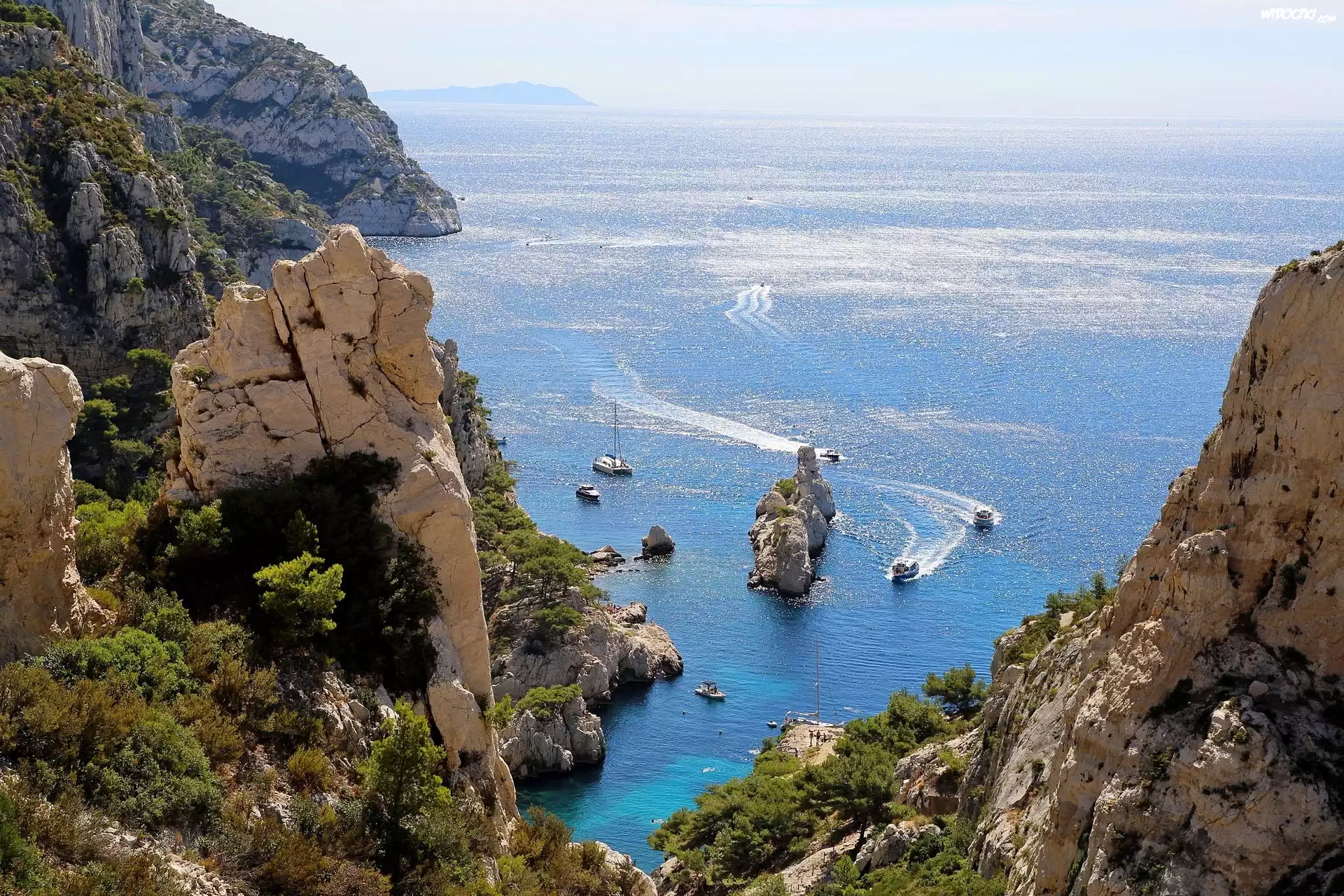 Zdjęcia, Morze, Skaliste Wybrzeże, Łodzie