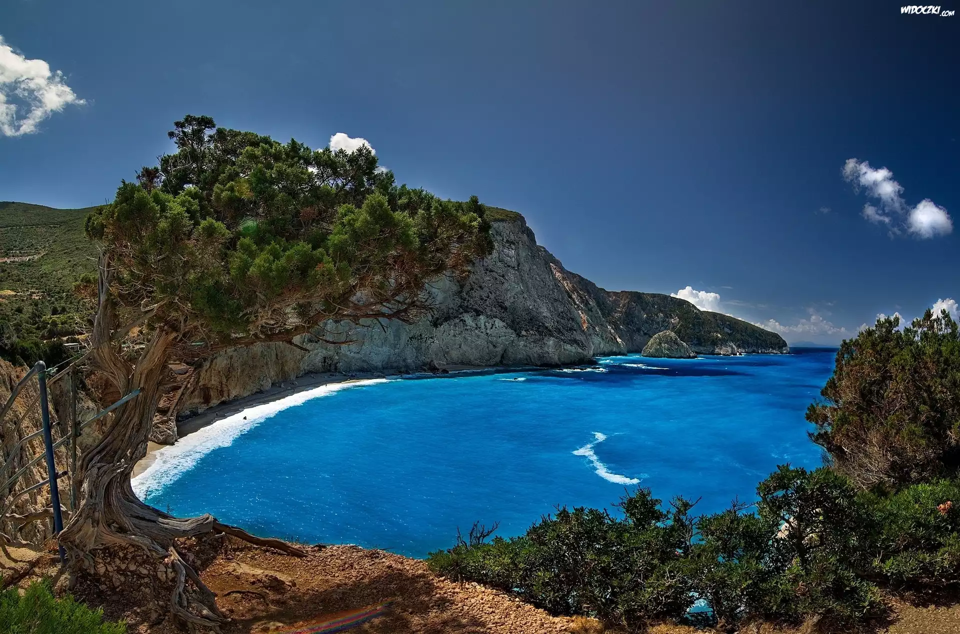 Zdjęcia, Plaża Porto Katsiki, Wyspa Leukada, Grecja, Morze Jońskie, Skały, Wybrzeże