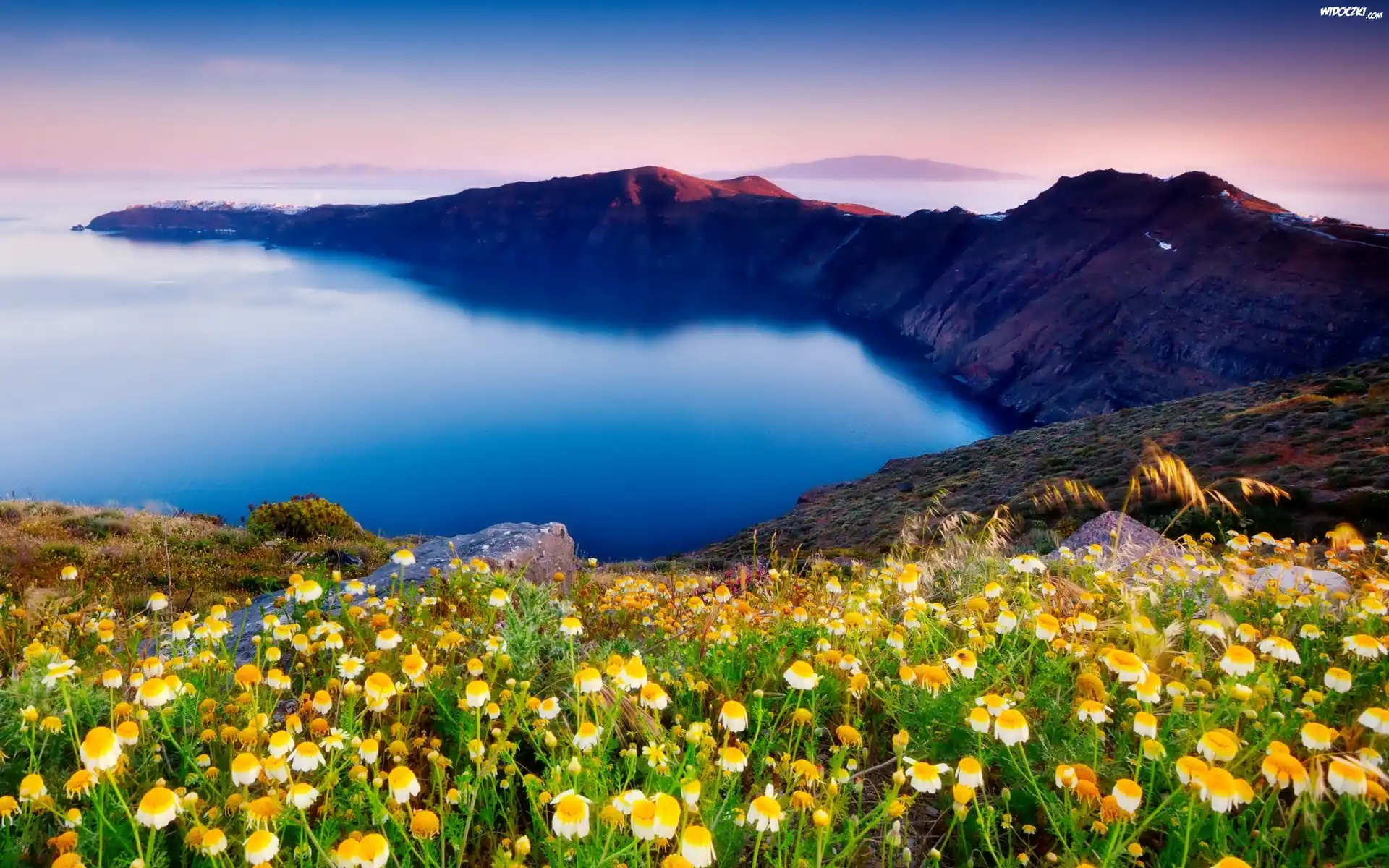 Zdjęcia, Morze, Skały, Zatoka, Kwiaty, Wyspa, Islandia