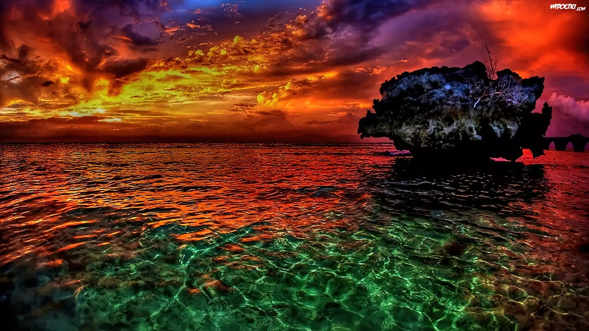 Zdjęcia, Morze, Skała, Kolorowe, Zachmurzone, Niebo