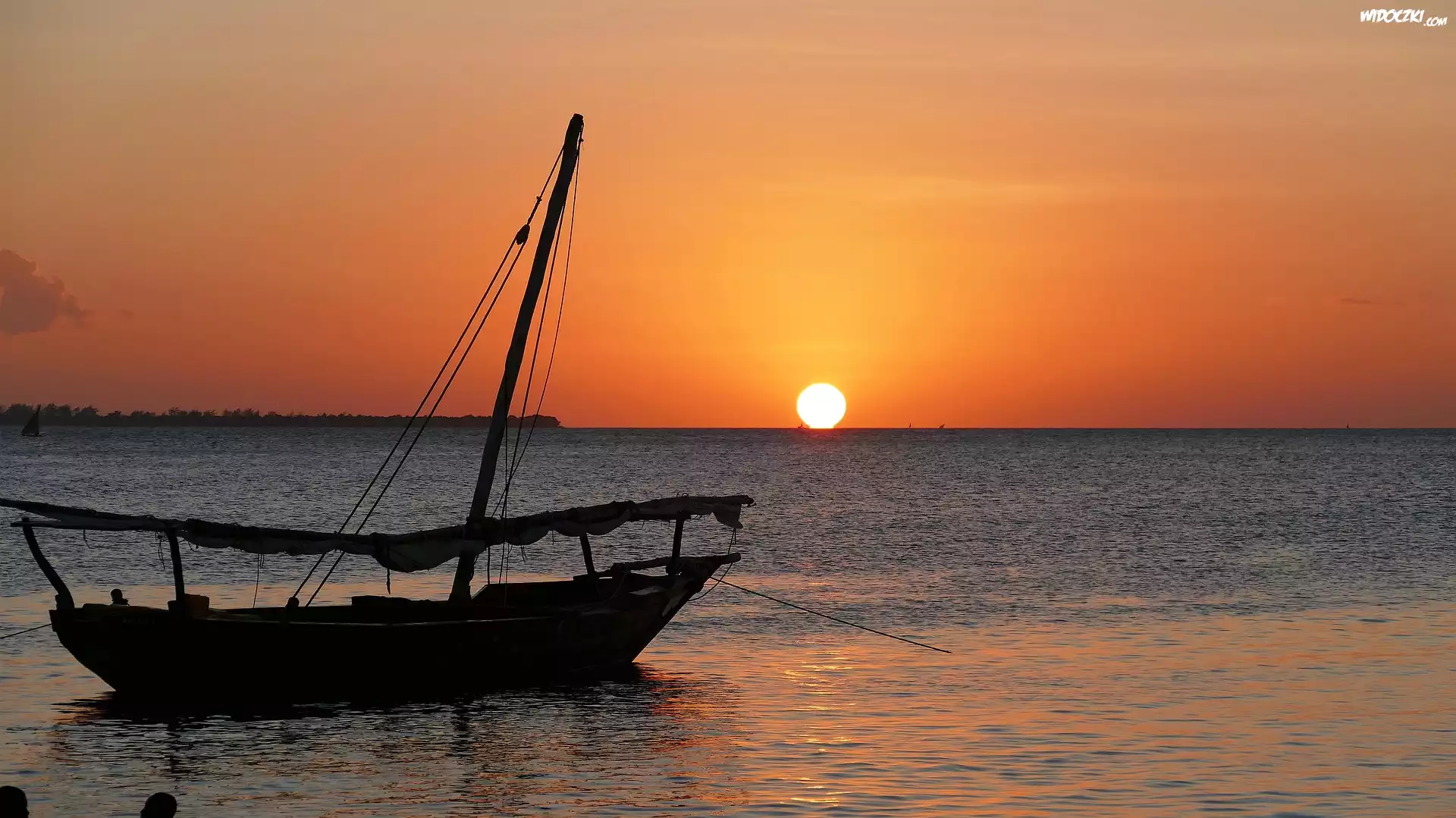 Zdjęcia, Morze, Żaglówka, Zachód słońca
