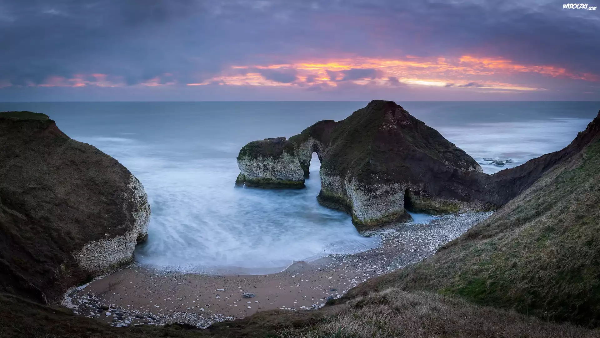 Zdjęcia, Morze, Skały, Brzeg, Zachód słońca