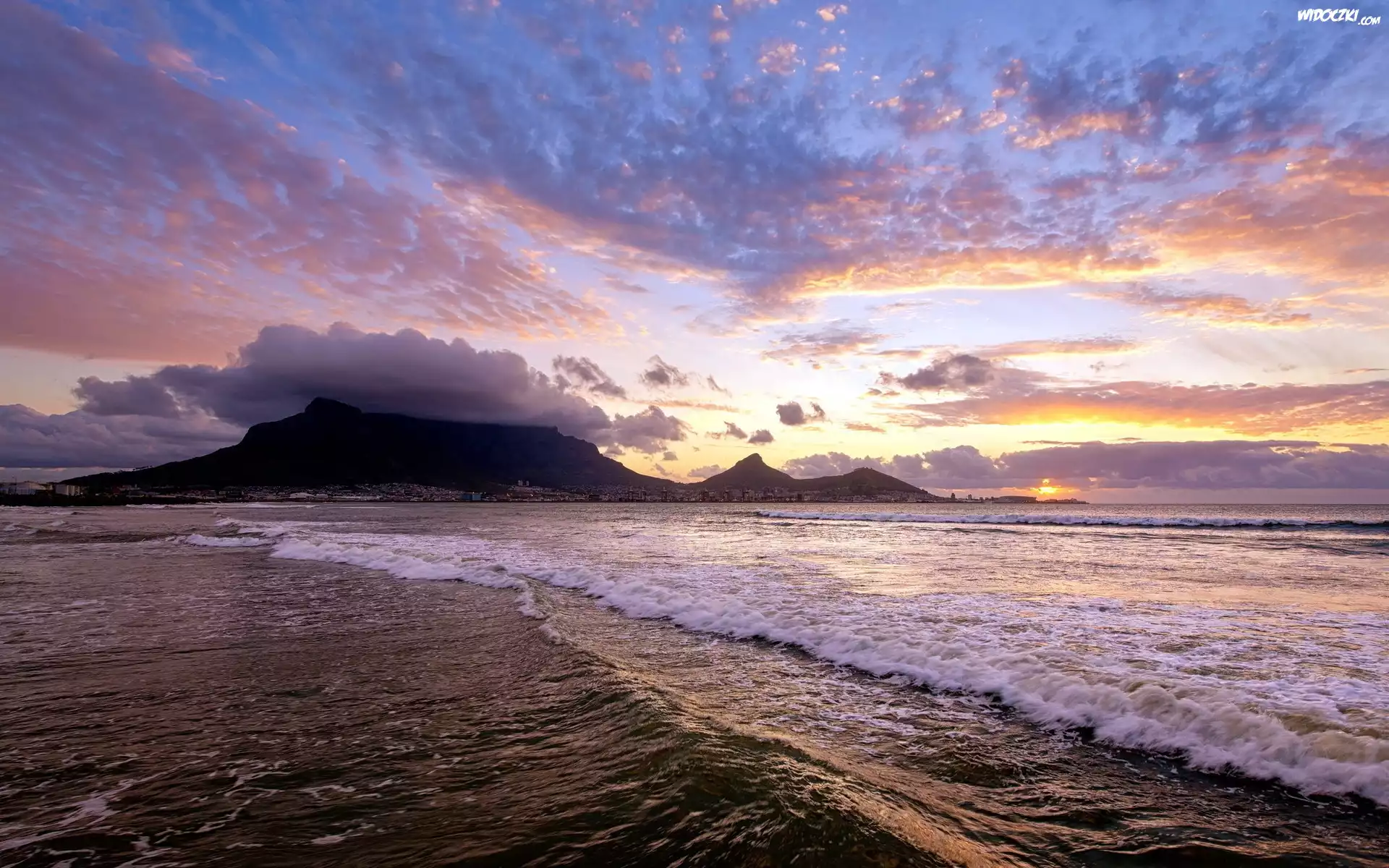 Zdjęcia, Morze, Fale, Chmury, Zachód Słońca