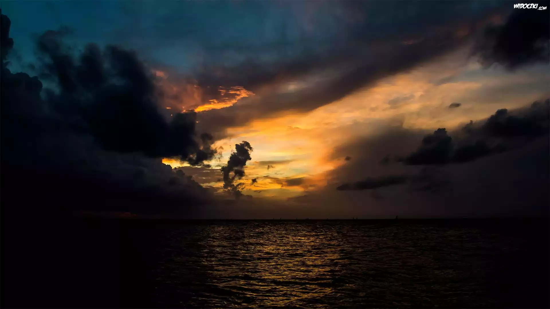 Zdjęcia, Morze, Chmury, Zachód Słońca