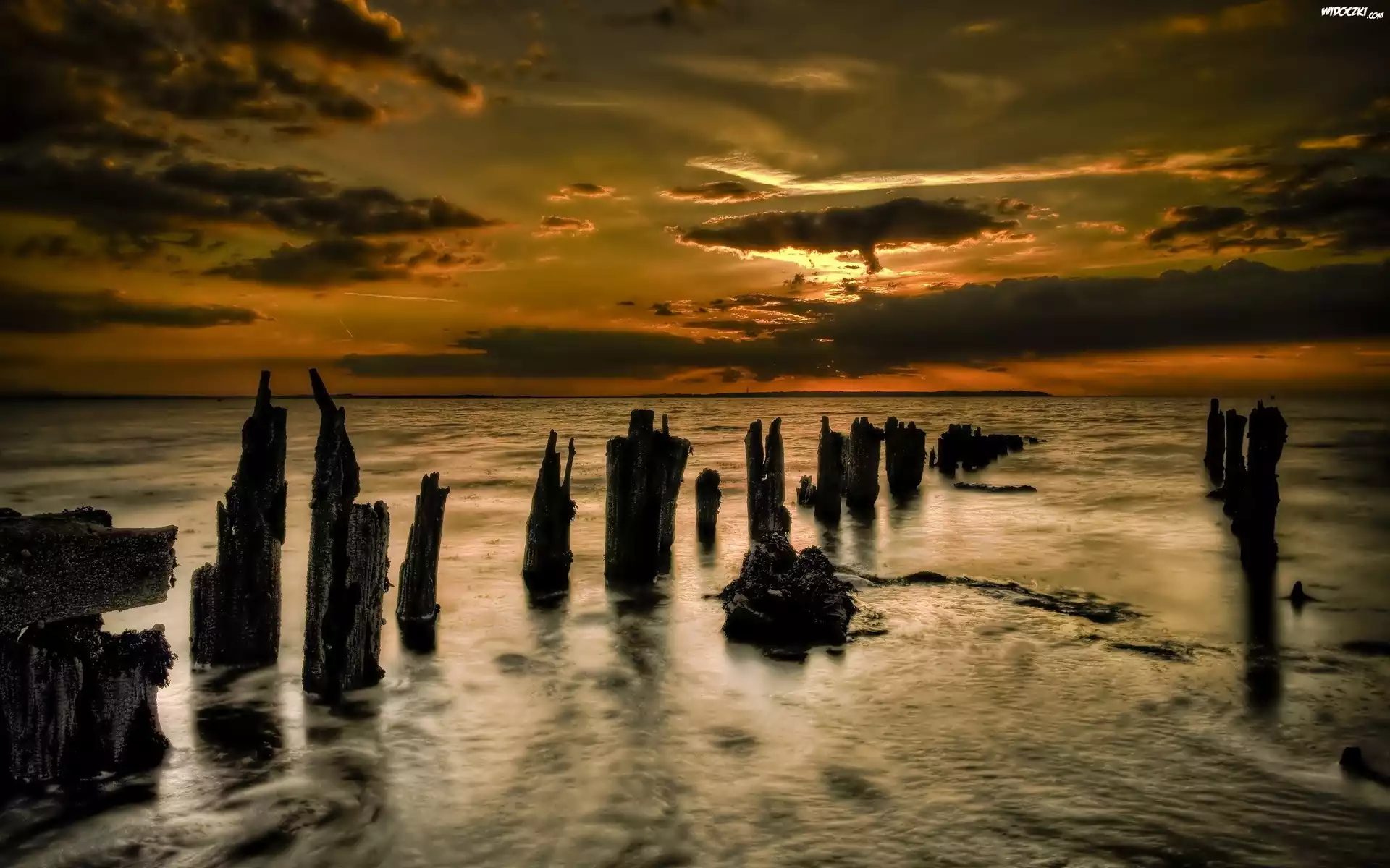Zdjęcia, Morze, Chmury, Zachód Słońca