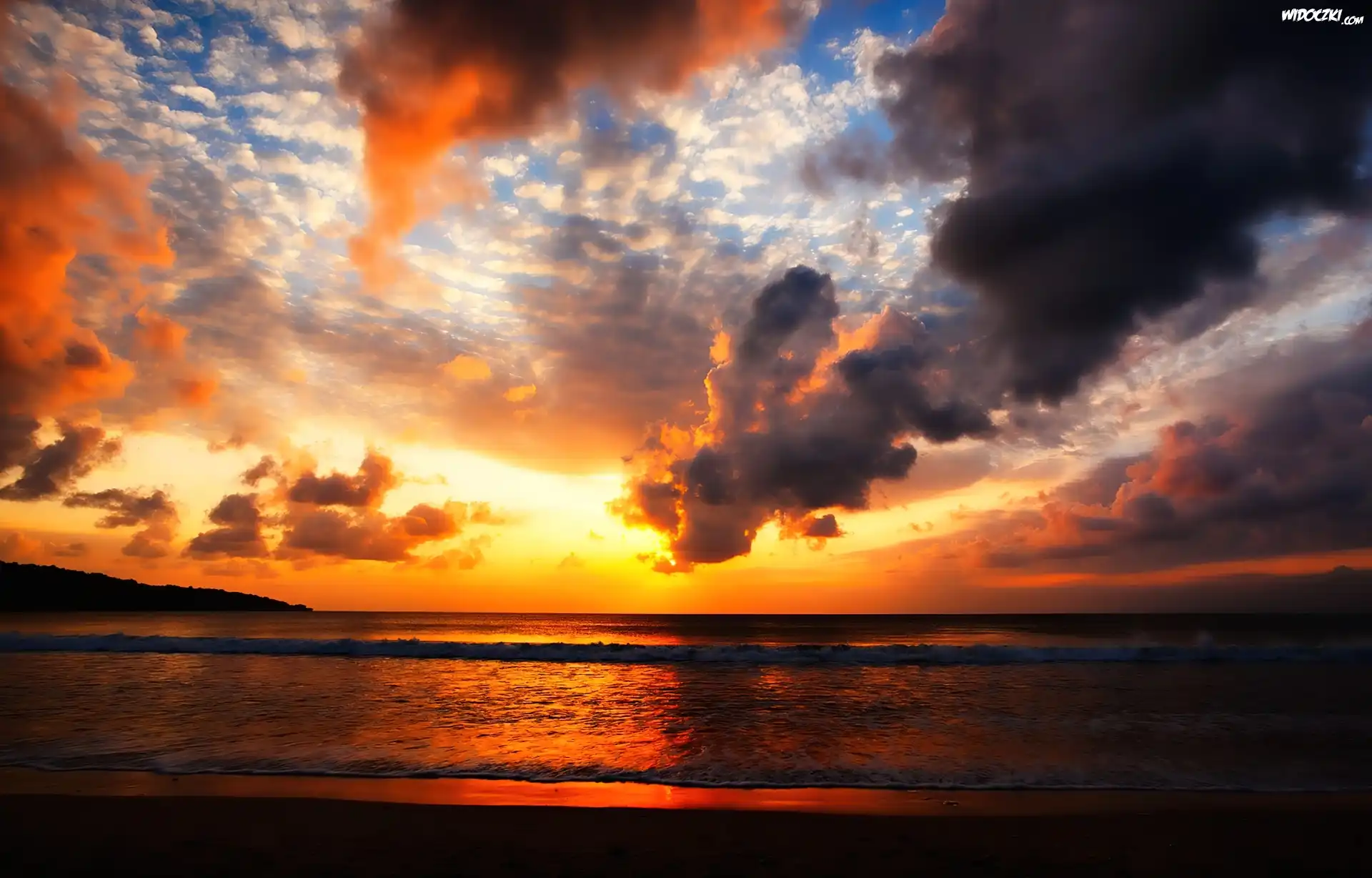 Zdjęcia, Morze, Chmury, Zachód Słońca