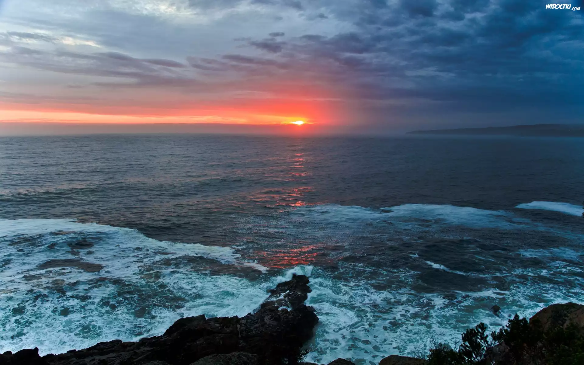 Zdjęcia, Morze, Skały, Fale, Zachód, Słońca