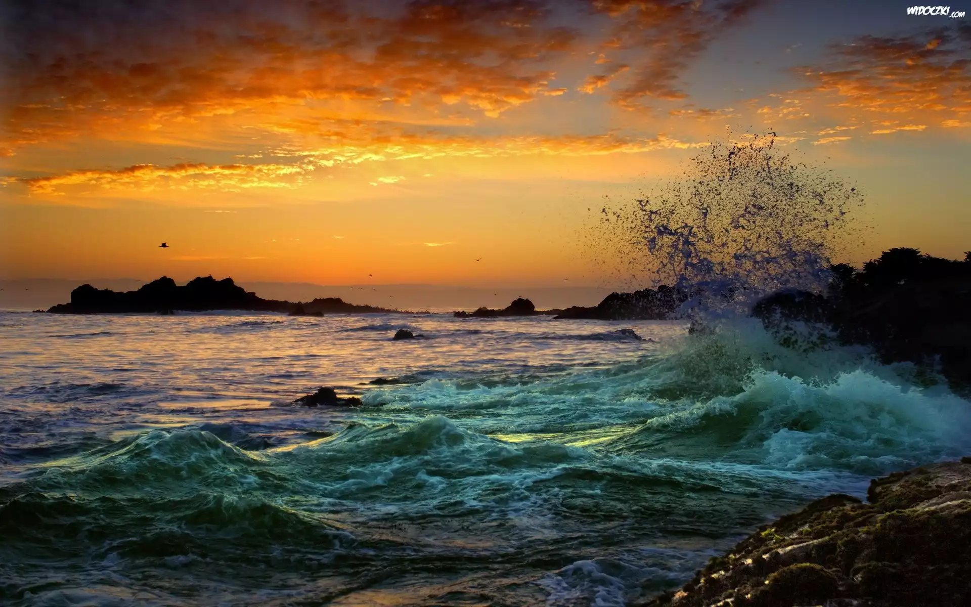 Zdjęcia, Morze, Fale, Zachód Słonca